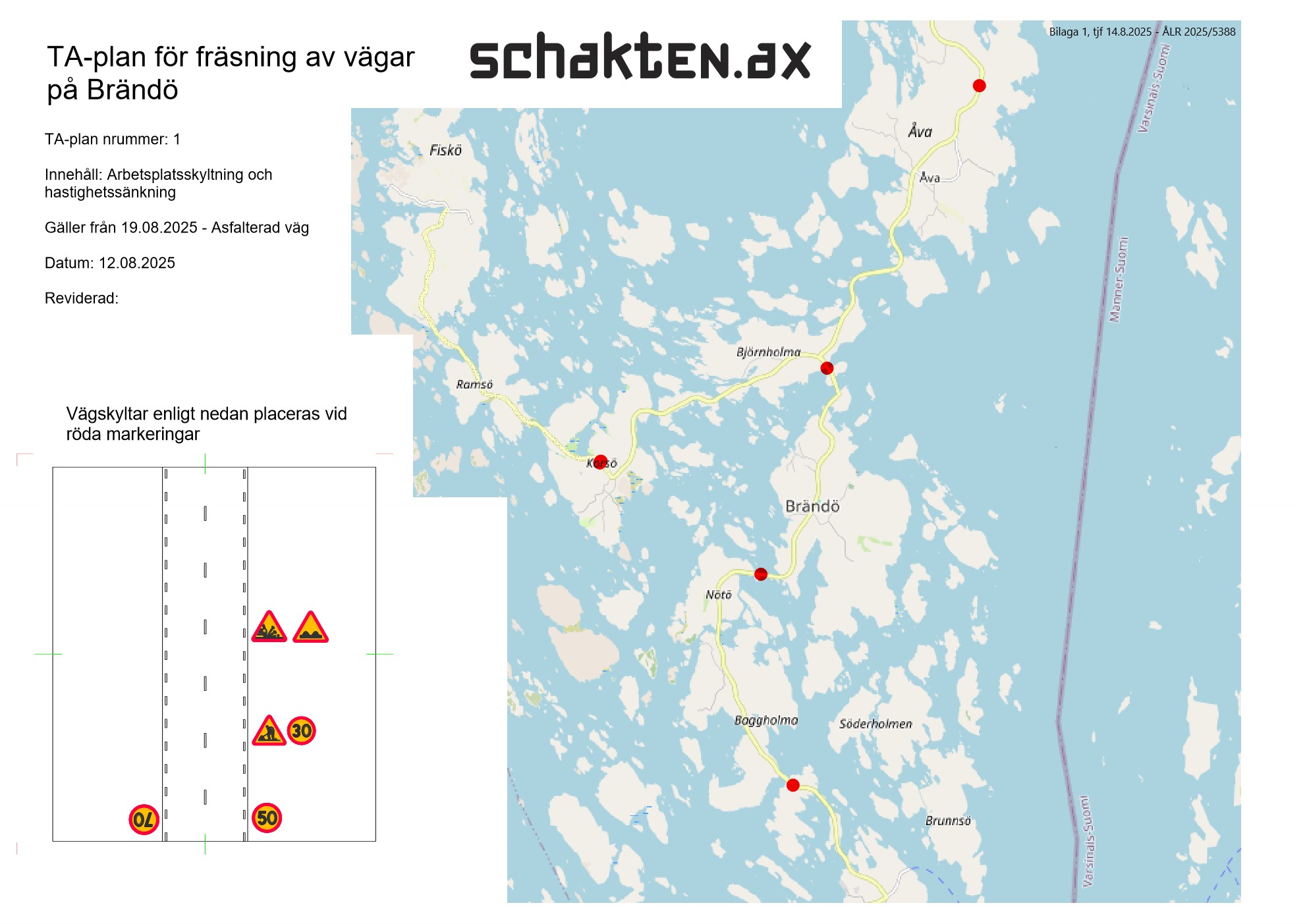 I Brändö pågår för närvarande vägarbeten längs Tour de Skiftets rutt. Därför har den gamla asfaltbeläggningen tagits bort på vissa vägavsnitt för att ersättas med ny, och på dessa sträckor kör man tillfälligt på grus. Arbetena färdigställs så snart som möjligt, dock senast den 31.10.2025. Se på kartan var vägarbetena pågår längs rutten.